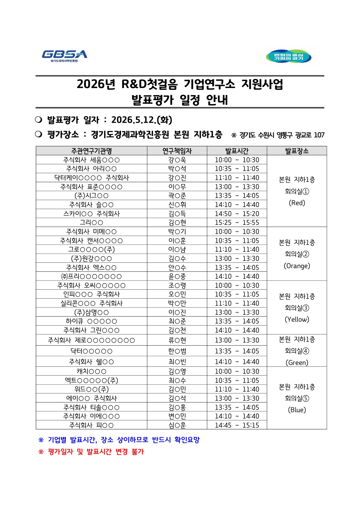2026년 R&D 첫걸음 기업연구소 지원사업 발표평가 일정 안내