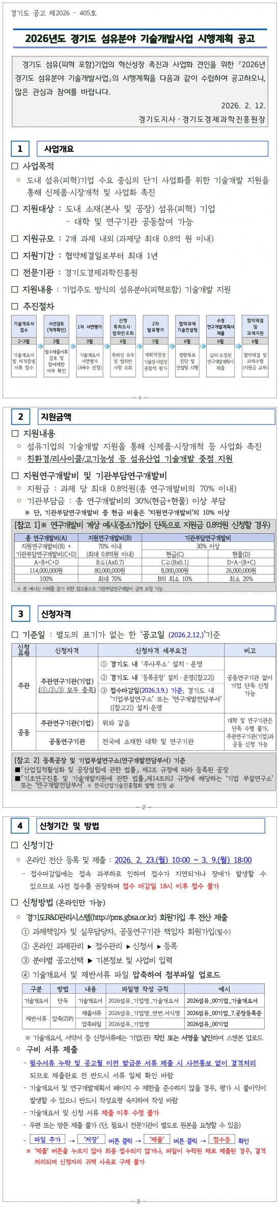 2026년 섬유분야 기술개발사업 시행계획 공고