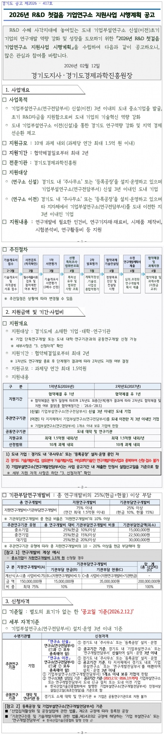 2026년 RnD 첫걸음 기업연구소 지원사업 시행계획 공고