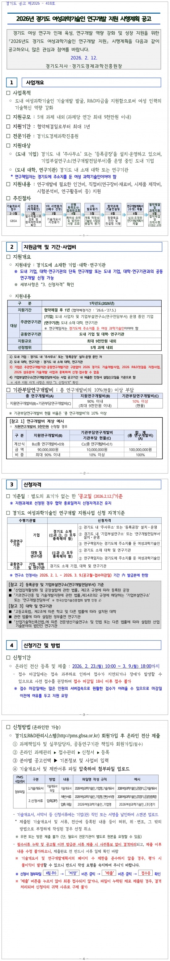 2026년 경기도 여성과학기술인 연구개발지원사업 모집 공고