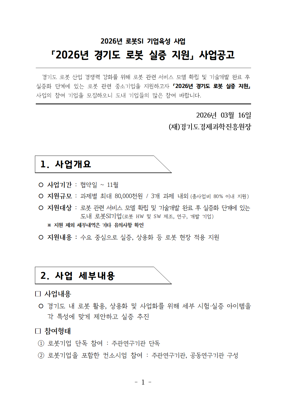 2026년 경기도 로봇 실증 지원사업 사업공고